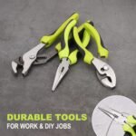 - Pliers are constructed by forged steel with heat treatment for strength and durability, hardened cutting edge for easy jobs. 12-inch tool bag for well organization.