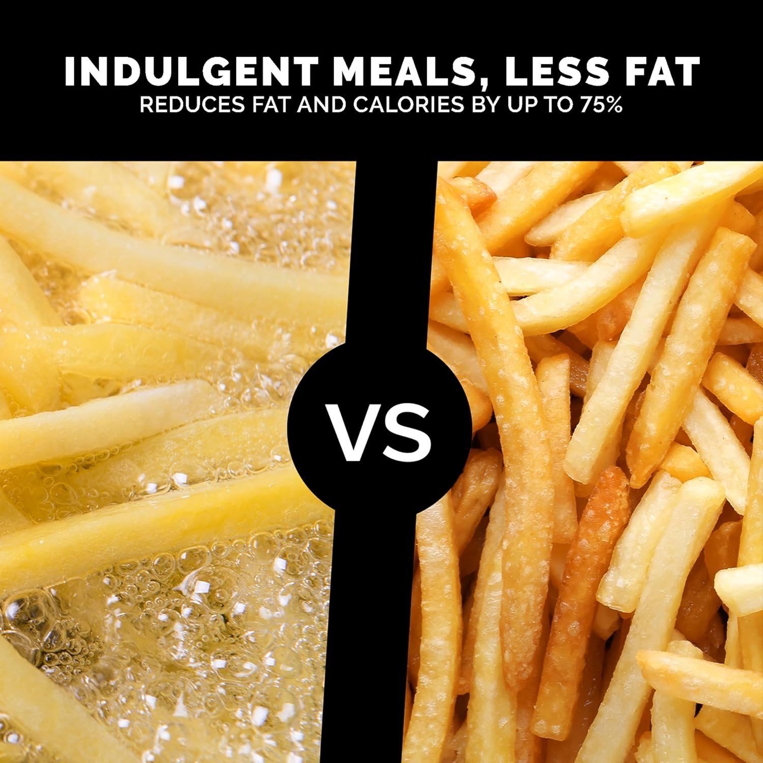 This 26QT 10-in-1 air fryer oven is a countertop cooking powerhouse, replacing 10 kitchen appliances (air fryer, baker, toaster, roaster, rotisserie, braiser, searer, dehydrator, broiler, warmer) to maximize space and efficiency. Powered by Turbo Rapid Cook technology, it cooks French fries up to 22% faster, steak up to 37% faster, and chicken up to 27% faster than traditional methods—saving over 77% more energy than full-sized ovens, with crispy, golden results using hot air instead of excess oil for healthier meals.