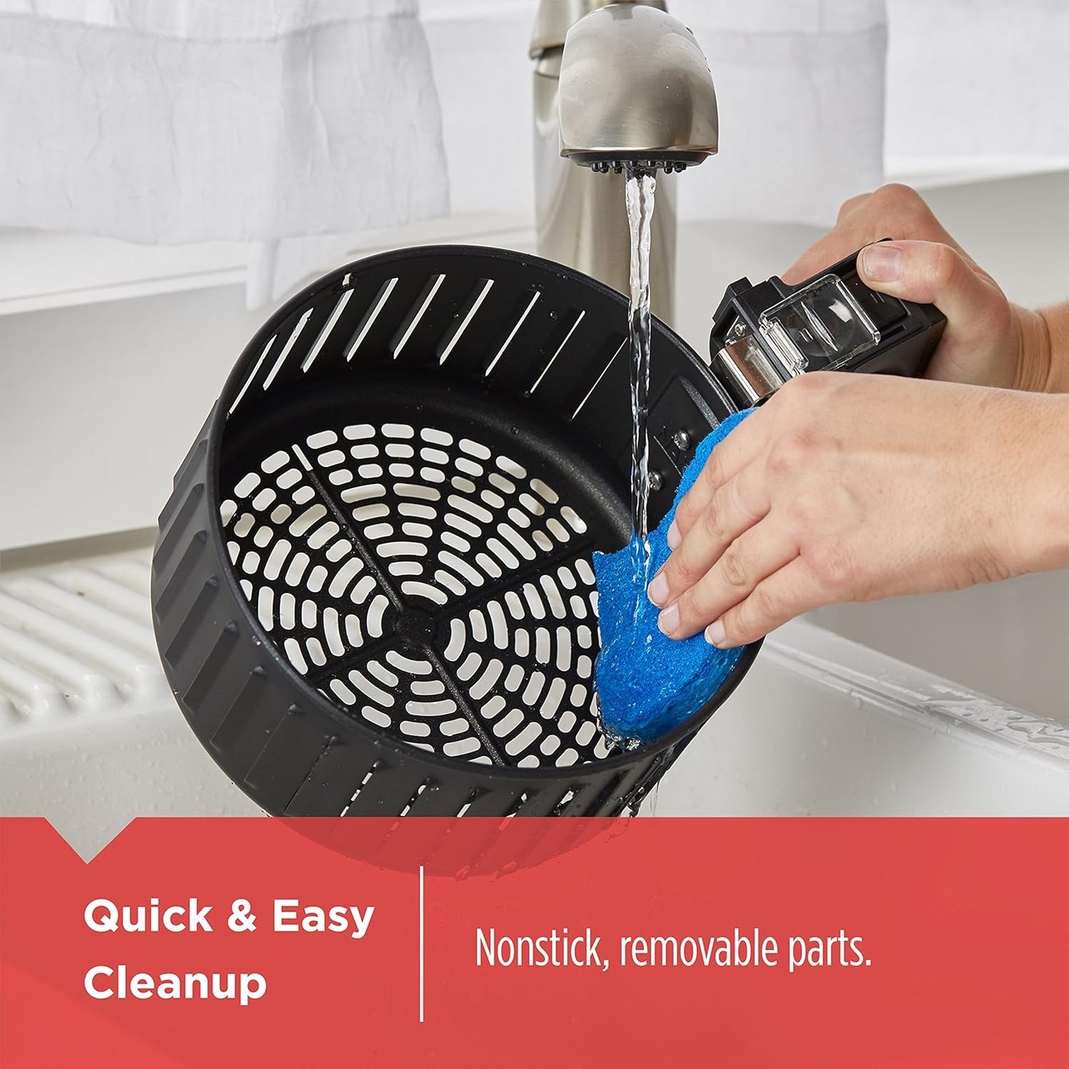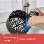 User-friendly and easy to clean, the air fryer comes with a cool-touch handle that keeps hands safe from heat when retrieving food. All nonstick cooking parts including the pan, basket and separator are removable, and dishwasher safe for quick cleanup—no tedious hand scrubbing required. The smooth plastic exterior is easy to wipe clean with a damp cloth, keeping the air fryer looking new with minimal effort.