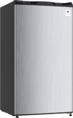 Built with durability and safety in mind, the fridge has a stainless steel door and body construction, ETL certification for safety, and a compact footprint (17.83″W x 16.73″D x 32.8″H) that fits seamlessly in small spaces without sacrificing storage. Weighing 45 pounds, it’s sturdy yet manageable to move when needed. Whether you’re furnishing a dorm room, adding extra cooling to your office, or need a compact fridge for your apartment, this 3.2 Cu.Ft mini fridge combines style, functionality and efficiency to meet all your small-space cooling needs.