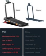 - Powerful & Quiet Motor: Driven by a robust 2.5HP motor, this foldable treadmill with incline supports users up to 300 lbs. It offers a speed range from 0.6 to 6.2MPH while operating at a quiet noise level below 45 dB. This ensures a powerful performance that won’t disturb others, making it ideal for any place