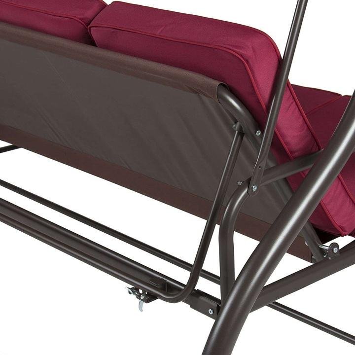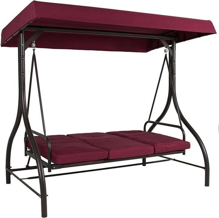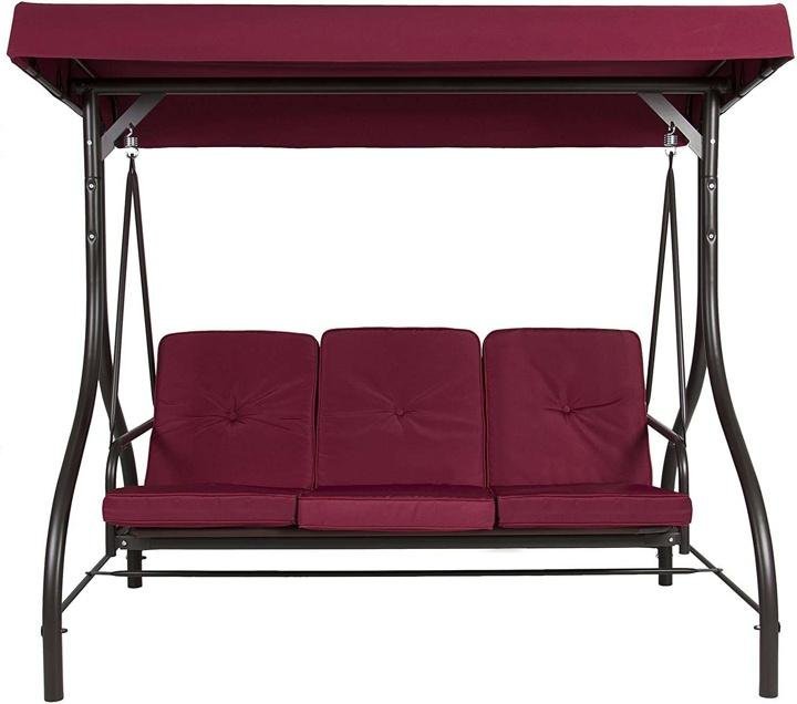 3-Seat Converting Outdoor Patio Canopy Swing Hammock – Burgundy