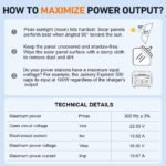 • 【CHECK YOUR POWER STATION’S INPUT LIMIT】 Some power stations cap input (e.g. 150-200W max). Even under full sun, this 300W panel cannot exceed that cap—this is normal system design, not a defect. Please verify your specs or contact us before purchase.