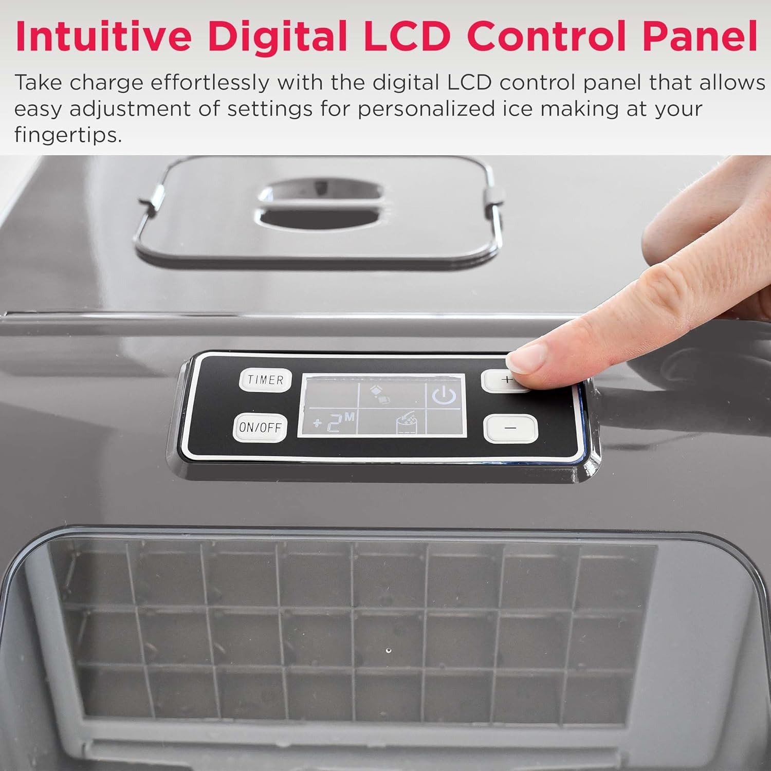 • Intuitive Control – The ice cube maker features a transparent window so you can easily monitor ice levels and see when ice is being made. Take full control with the digital LCD control panel for easy adjustment of settings and ice size.