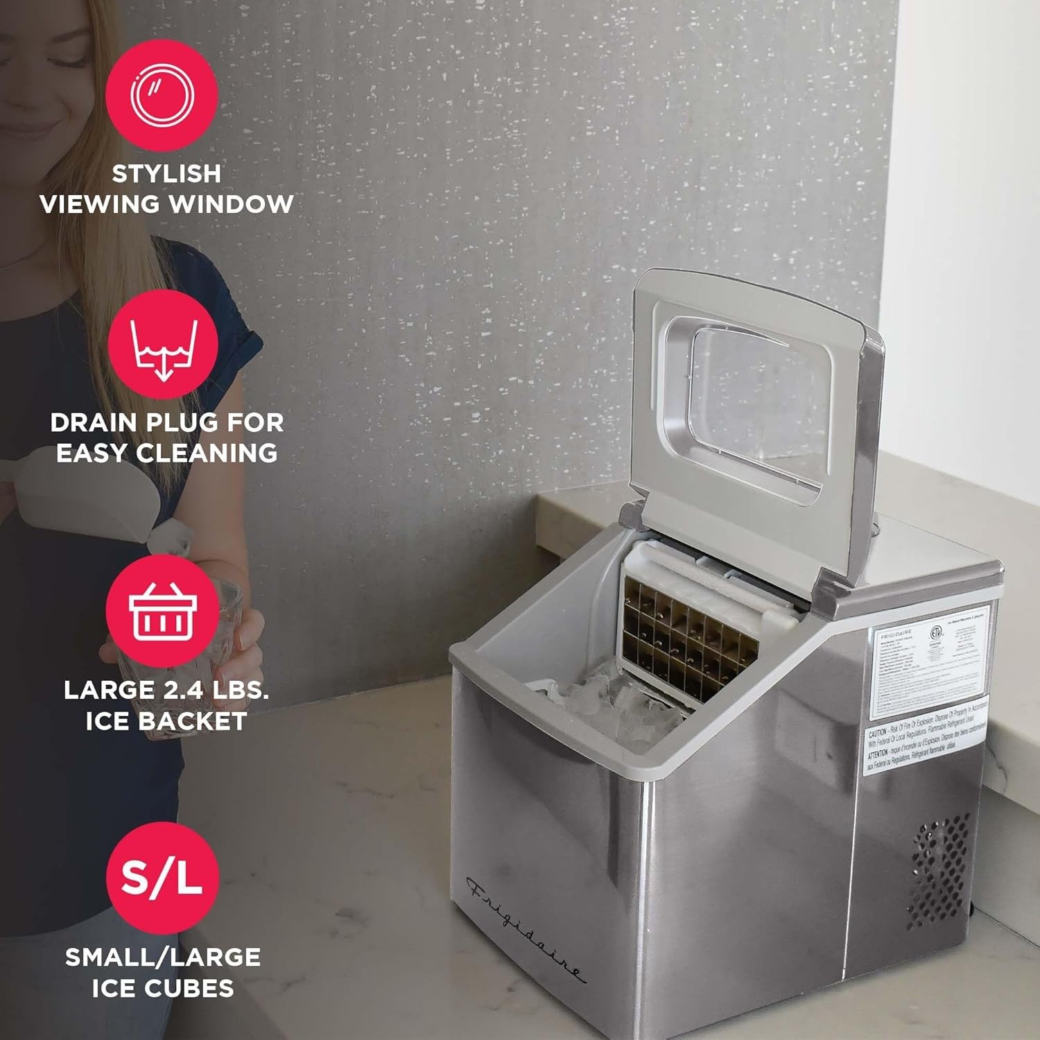 • Fast Ice Production – Never run out of ice again with the Frigidaire Stainless Steel Ice Maker that produces up to 40 lbs. of ice per day. Enjoy gourmet, restaurant-quality ice at home whenever you want!
