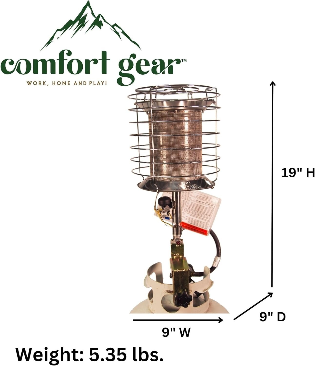 The compact and lightweight design (4.9 pounds) makes it easy to transport and set up anywhere outdoors, with rugged construction ensuring reliable performance in all weather conditions. This tank top heater is a cost-effective and versatile outdoor heating solution for construction, workspaces, patio gatherings and all on-the-go outdoor warmth needs.