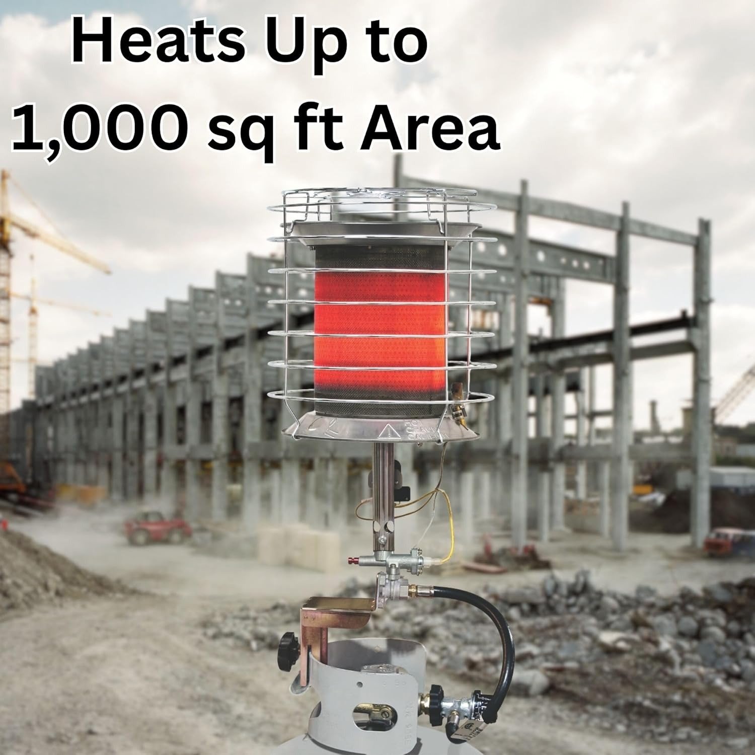 This 360° propane tank top heater is engineered for powerful all-around outdoor heating, delivering a maximum 40000 BTU of radiant heat and warming areas up to 1000 square feet—perfect for construction sites, job sites, patios, sporting events and all outdoor heating needs.