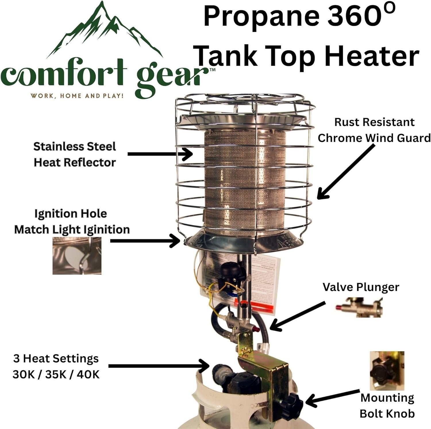 Included Components: 360° Propane Tank Top Heater, Hose & Regulator