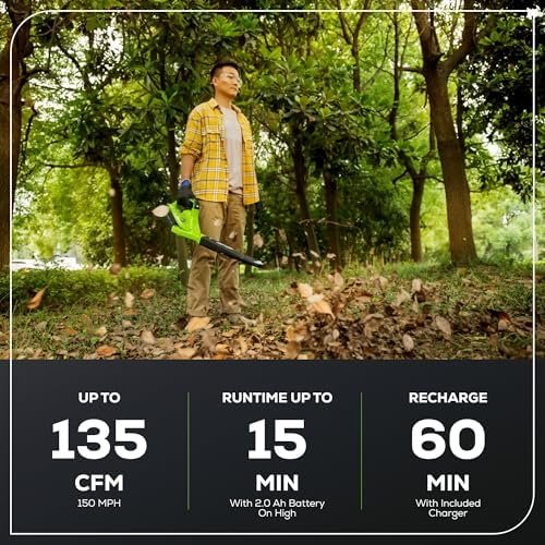 40V Leaf Blower/Sweeper, 150 MPH / 135 CFM, Lightweight, Quiet, with 2.0 Ah Battery and Charger, Perfect for Residential Lawn Care, Leaf Blowing Debris, Dust, Light Snow, and More