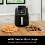 Designed for everyday use, this air fryer has intuitive touch controls and programmable settings for easy operation. It comes with a chef-inspired recipe book to help you explore a variety of delicious dishes, and the durable construction ensures long-term reliable performance for daily cooking demands.