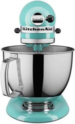 5-Qt. stainless steel bowl with comfortable handle offers enough capacity to mix dough for 9 dozen cookies or 4 loaves of bread in a single batch.