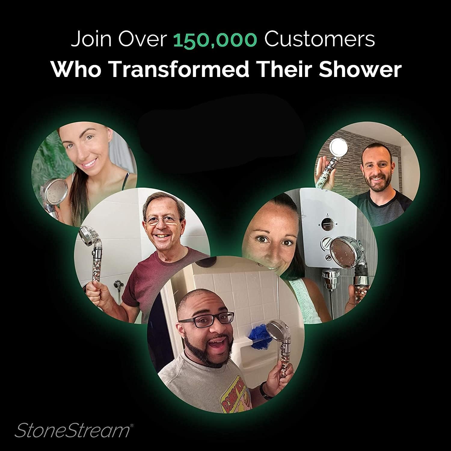 The kit includes everything needed for quick installation: handheld shower head, 5-foot hose, wall adapter, 15-stage filter, threaded seal tape, replacement mineral stones, and in-handle stones. It connects to any standard hose in minutes, no professional plumbing required. Backed by a 1-year warranty and 24/7 support, this shower head kit is durable, easy to maintain, and suitable for homes with hard water or users with sensitive skin/hair.