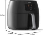 Featuring 5 intuitive cooking presets and a sleek digital touch display, the air fryer allows easy customization of temperature (104°F-392°F / 40°C-200°C) and cooking time, with a convenient Keep Warm Mode to maintain food temperature after cooking. The detachable QuickClean basket has a durable nonstick coating, and all removable parts are dishwasher safe for effortless cleanup—saving time on post-cooking chores. The compact black plastic design (15.55″D x 15.55″W x 15.67″H) complements any kitchen decor, while the cool-touch construction ensures safe daily use with less smell and splattering than traditional fryers.