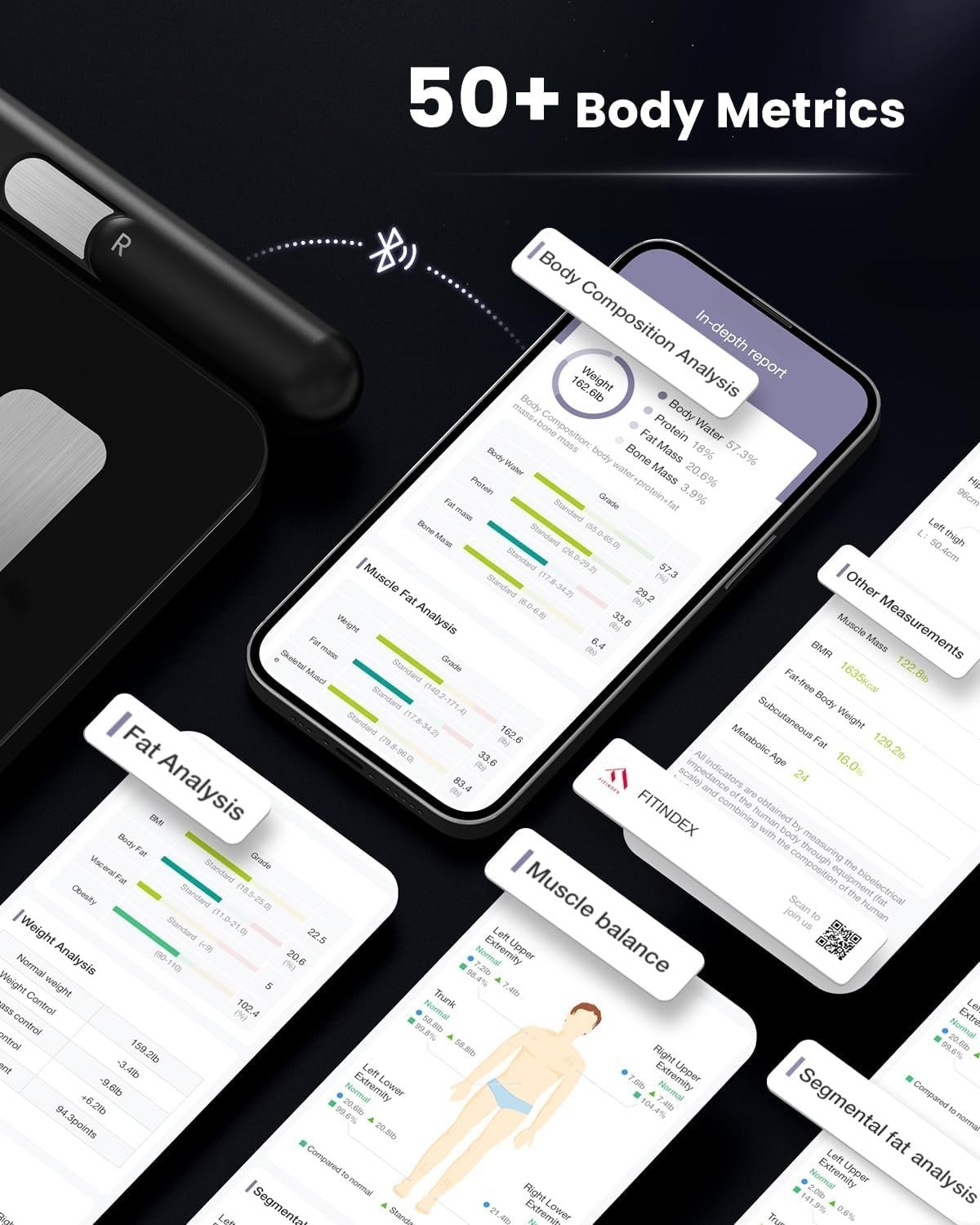 Tracking Metrics: Body Fat Percentage, Muscle Mass, BMI, Bone Mass, Water Weight, Body Composition