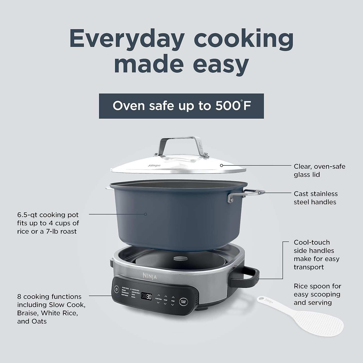- 8 COOKING FUNCTIONS: Slow cook, Sear/Sauté, Braise, Keep Warm, White Rice, Brown Rice, Oats and Pasta.