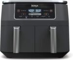Boasting 6-in-1 multi-functionality (Air Fry, Air Broil, Roast, Bake, Reheat, Dehydrate), this air fryer handles everything from crispy fried favorites and roasted proteins to baked goods, dehydrated snacks and leftover reheating—all with up to 75% less fat than traditional deep frying methods. The Smart Finish feature intelligently syncs cook times across both zones so different dishes finish at the exact same time, while the Match Cook button instantly copies settings between zones to unlock the full 8QT XL capacity, perfect for cooking up to 4 lbs of French fries or chicken wings for family gatherings and large meals.