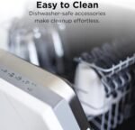 With a wide temperature range of 105°F to 450°F, the air fryer adapts to gentle dehydration of fruit chips, veggie jerky and more, as well as high-heat crisping for golden, crunchy fried foods—all powered by 1690 watts of efficient convection heat. The intuitive touch and push button controls make setting adjustments effortless, and built-in programmable settings let you customize cook times and temperatures for perfect results every time.
