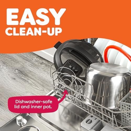 • Quick Cleanup and A Little Extra: No more fighting about who has to do the dishes. The dishwasher-safe lid and inner pot make clean up a breeze. Includes 2 extra sealing rings and a stainless steel steam rack to keep you ready for anything