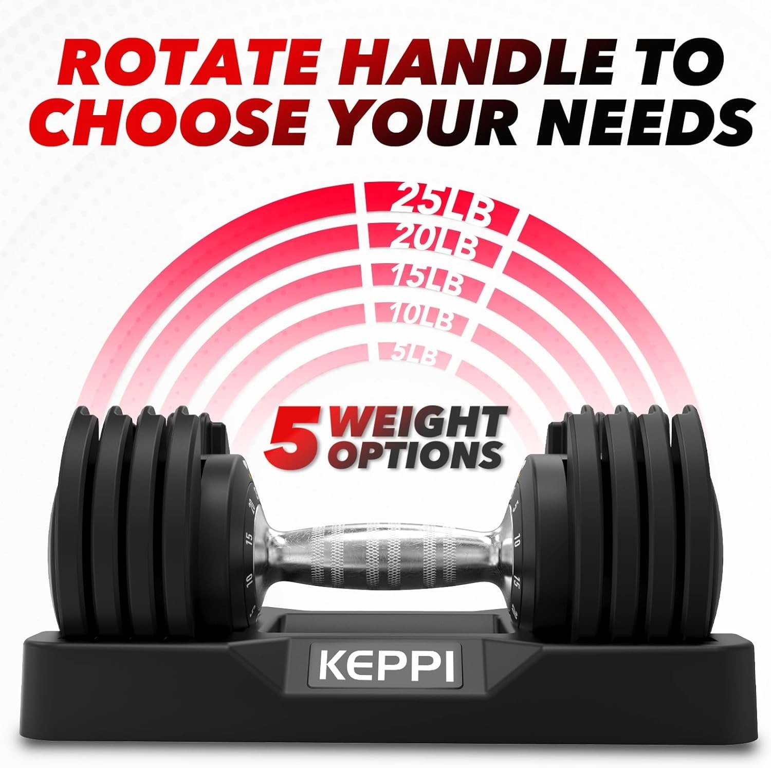 Keppi Adjustable Dumbbells Set-25lb/40lb/55lb/60lb, Anti-Slip Metal Fast Adjust Weight Handle, Exercise & Fitness for Full Body Workout – Adjustable Dumbbell Series