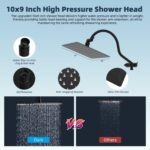 • Rainfall 10×9” Shower Head: The large rainfall shower head body is made of certified SUS 304 stainless steel to ensure rust resistance, durability, and a long service life. Its ultra-thin design and air-in technology combine to deliver a luxurious rain spray through 110 splash jets. The upgraded 10×9” shower head delivers higher water pressure and is lighter in weight, thereby providing better support for the shower arm extension; while maintaining the same refreshing showering experience