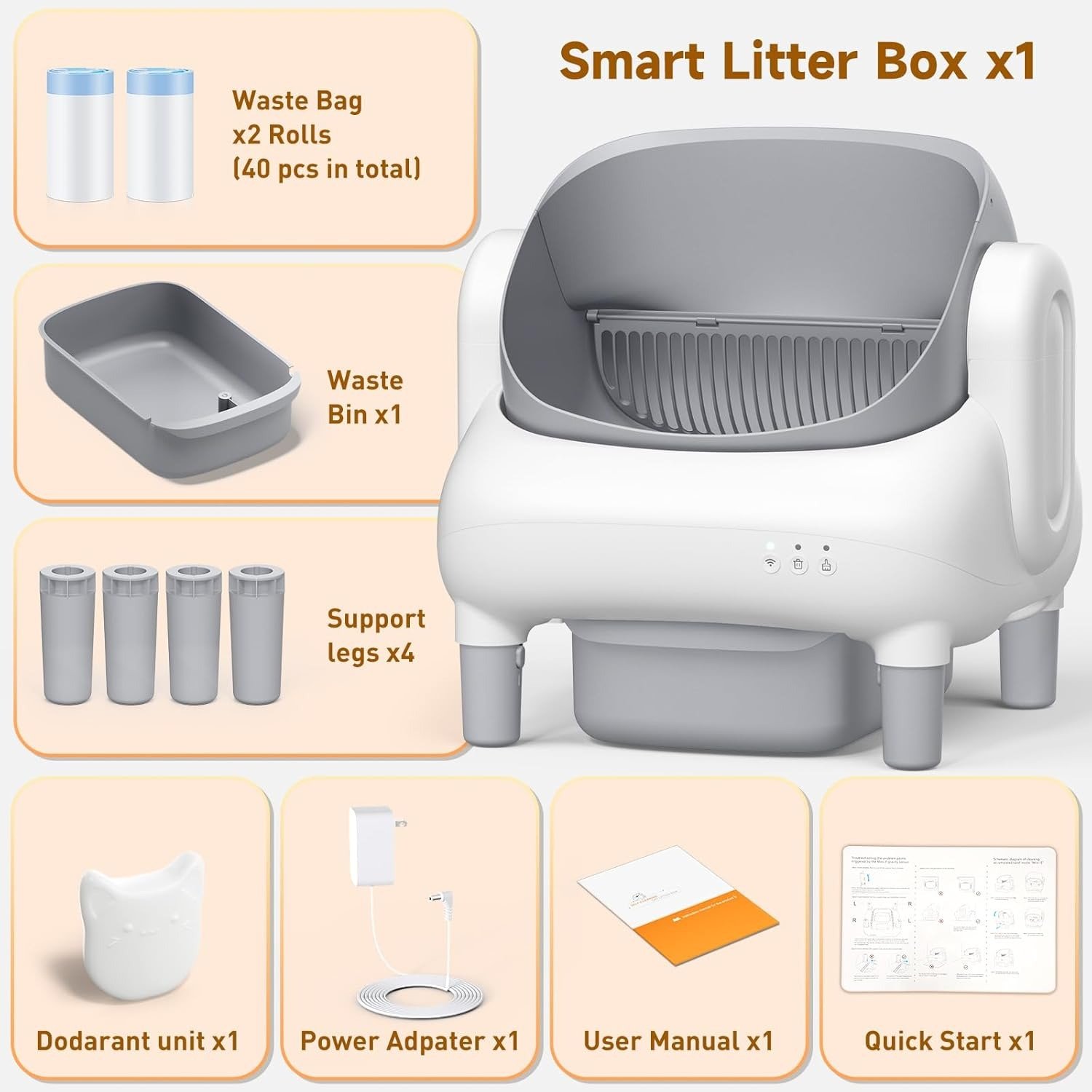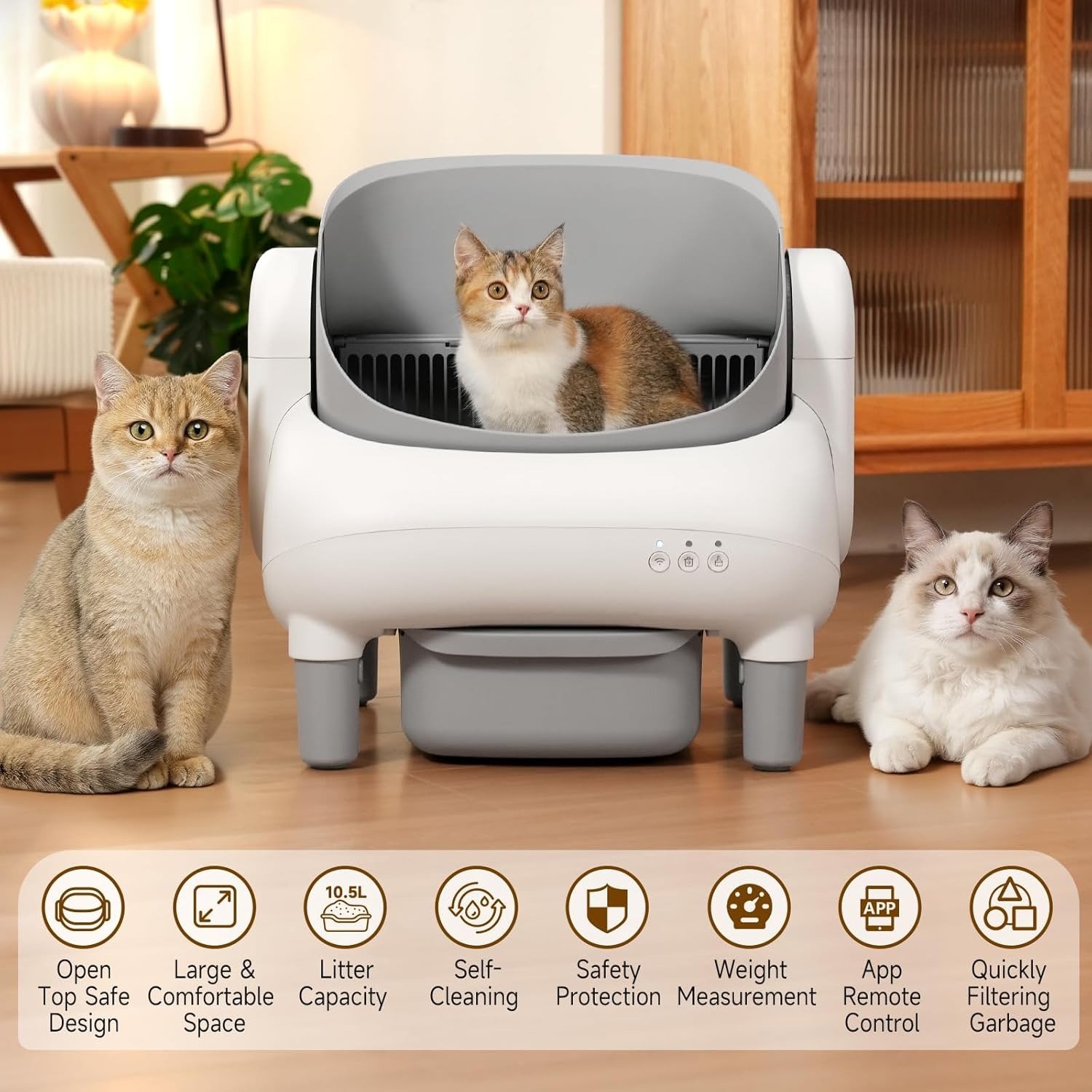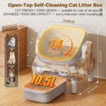 - Large Capacity for Multiple Cats:Features a spacious 15″ x 16,33″ open-top entrance and a 10 5L sealed waste bin. ideal for multi-cat households. Holds up to 14 days of waste, perfect for busy pet parents and frequent travelers. Suitable for cats over 3.3 lbs