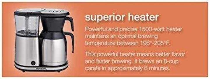 • Powerful and precise 1500-watt heater maintains an optimal brewing temperature between 195~-205~f