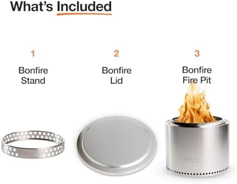 Bonfire Essential Bundle | Smokeless Fire Pit with Stand & Lid, Ideal for 4–6 People | Portable Wood Burning, Removable Ash Pan, Stainless Steel, 16.75″ H x 19.5″ Dia, 21.75lbs