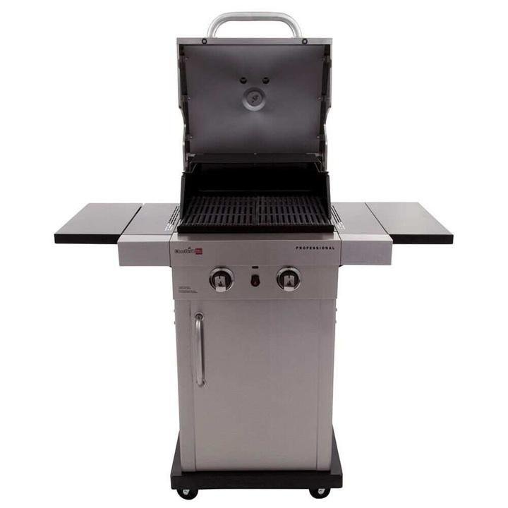 The Char-Broil Signature TRU-Infrared 2-Burner Cabinet 18,000 BTU Gas Grill is the perfect way to cook up a dinner for friends and family! With a total surface area of 445 square inches, use this reliable grill to dazzle your friends with tasty mouthwatering burgers, charred veggies, juicy steaks, and smoky chicken. This classic gas grill features 2 top-ported 443 stainless steel tube burners yielding 18,000 BTU of steak-searing power. Its built-in Surefire electronic ignition system provides a reliable spark every time, so you can get right to grilling with just the push of a button. The grill*s main space is 325 square inches of porcelain-coated cast iron grates, to protect from rust and weathering, and operates at high heat for cooking through those thicker steaks. But the grill also has 120 square inches of porcelain-coated swing-a-way rack that*s perfect for keeping your food warm or giving it an extra light grill. The lid and firebox are also porcelain-coated to help keep heat trapped while grilling and protect from debris and weather when not in use. Although some gas grills can be too powerful in one spot, this grill features TRU-Infrared even-heat technology that produces juicier, evenly cooked food without hot or cold spots on the grill. You can also tell exactly how hot you*re cooking your food using the lid-mounted temperature gauge, and enjoy extra workspace with the foldable side shelves. Additional storage space can be found in the lower cabinet that houses and protects the propane gas tank, perfect for keeping smaller accessories like tools or condiments. With Dual Fuel compatibility, you can easily convert your fuel source from propane to natural gas, adding an extra dimension of versatility! Beneath the cabinet are 4 caster wheels for maximum mobility, 2 of which lock in place to keep the grill stable and steady while you*re cooking. Grill weighs 107 pounds and measures 46.8′′L x 23′′W x 47.2′′H. Designed for use with 20 pound propane or natural gas cylinders. Comes with 10 year warranty on burners, 3 year warranty on firebox, lid, and grates, and 1 year warranty on all other parts. Some assembly is required; approximate assembly time is 90 minutes.