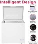 EASY CONTROL – Compressor On indicator and adjustable exterior Thermostat to perfectly froze any types of food such as seasonal harvests, meats and more