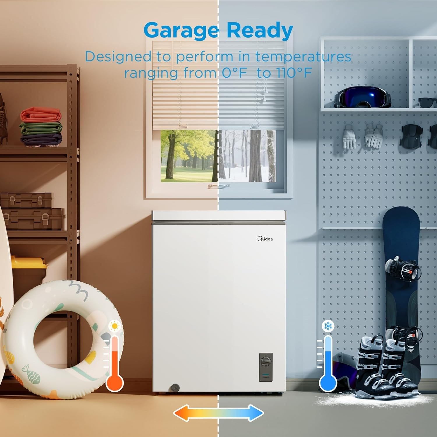 - Garage Ready – Designed and tested to operate efficiently in non-climate-controlled environments. (38°F to 110°F in fridge mode, 0°F to 110°F in freezer mode)