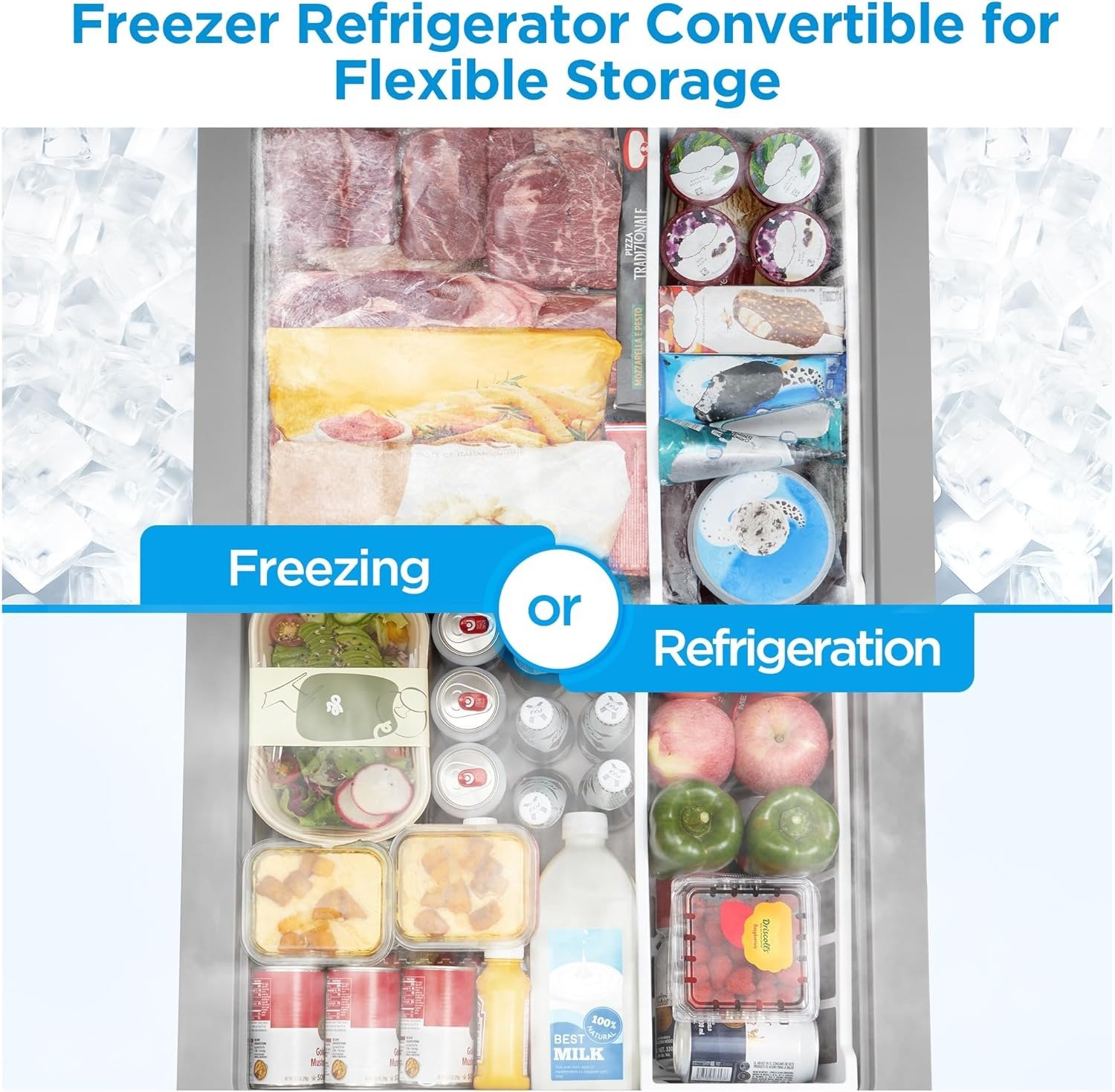 - Convertible – Easily converts between freezer and fridge modes to suit your ever-changing food storage needs.