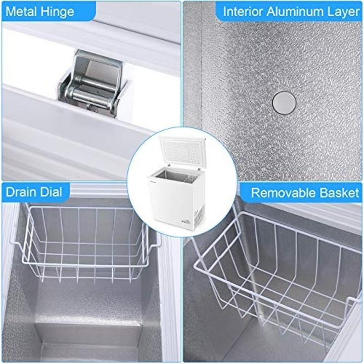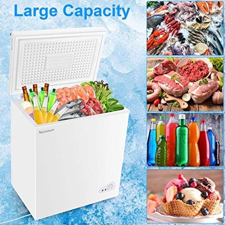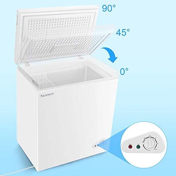 - ▽Excellent Refrigerating Capacity▼With 5.3 Cubic Feet, Nictemaw chest freezer is compact enough for the modern home. It meets the needs of freezing household food, also enough to face the shop needs. Our Freezer Dimensions: 30.7′(L) x 22.0′(W) x 35.8′(H) is small, and easy to move.