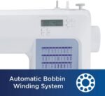 • IMPROVED NEEDLE THREADER: Easier than ever to use, the automatic needle threader reliably pushes the thread through the needle. The convenient, jam resistant drop-in top bobbin easy to load and helps ensure your bobbin stays in place