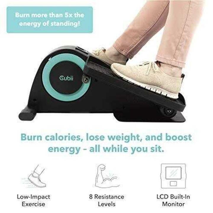 Details: Cubii JR1 takes the excuse out of ※I just don*t have time.§ Built specifically to be used while sitting. Because of Cubii JR1*s quiet and compact design, workout in your favorite chair at home or easily slip Cubii JR1 under your desk to discreetly workout at the office. Know how well you*re doing in real time with the built-in display monitor which records time, calories, distance, strides and RPM. Cubii JR1*s patented ergonomic design helps you go beyond the calorie count to engage your core, hip flexors, glutes, quads, hamstrings and calves, improve your posture and energy levels. In a recent study conducted by leading obesity experts, when compared to stationary sitting, Cubii JR1 increased participant*s energy expenditure by 84.5%. For comparison, a standing desk only increased participant*s energy expenditure by 16.7%. Other pedal machines on the market tend to mimic the motion of a bike vs Cubii JR1*s elliptical motion. The range of motion on a bike is typically a lot higher than an elliptical which puts more pressure on your knees. Because of Cubii JR1*s patented ergonomic angles, its smooth and unconscious elliptical motion won*t cause your knees to hit the underside of your desk and is low impact on your joints. NEAT-certified is a trademark of Mayo Foundation for Medical Education and Research and used under license. * Built in display monitor tracks real time calories, strides, distance, time and RPM * Patented ergonomic angels provide a smooth elliptical exercise that is low impact on your joints * Compact design allows you to workout at home or office, anytime, anywhere – no gym required * Select from 8 resistance levels, allowing you to adjust and control the intensity of your workout * Purchase includes all necessary equipment for easy assembly. Estimated assembly time is 3-5 minsPackage Dimensions: 24.6 x 12.8 x 12.5 inches