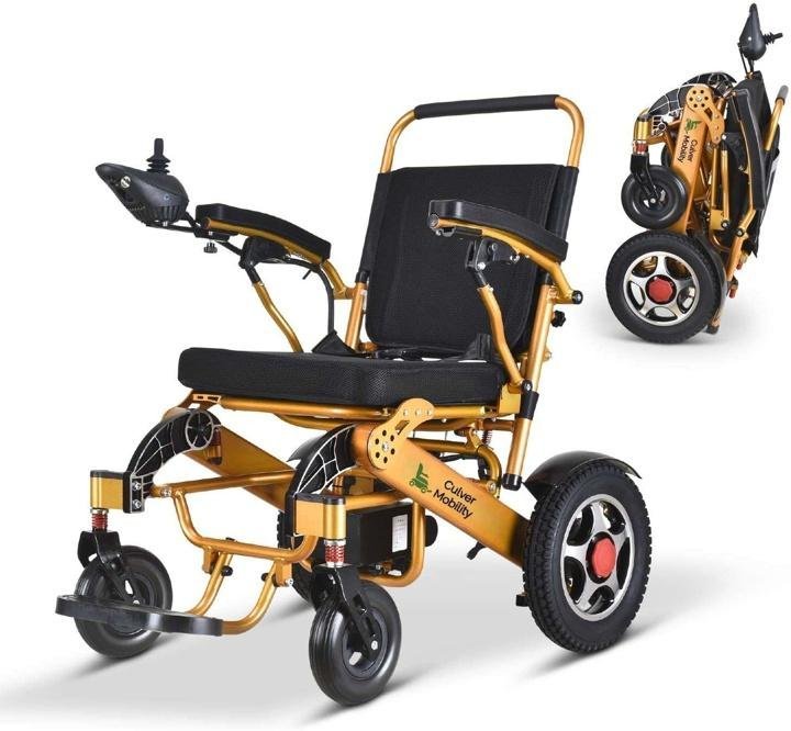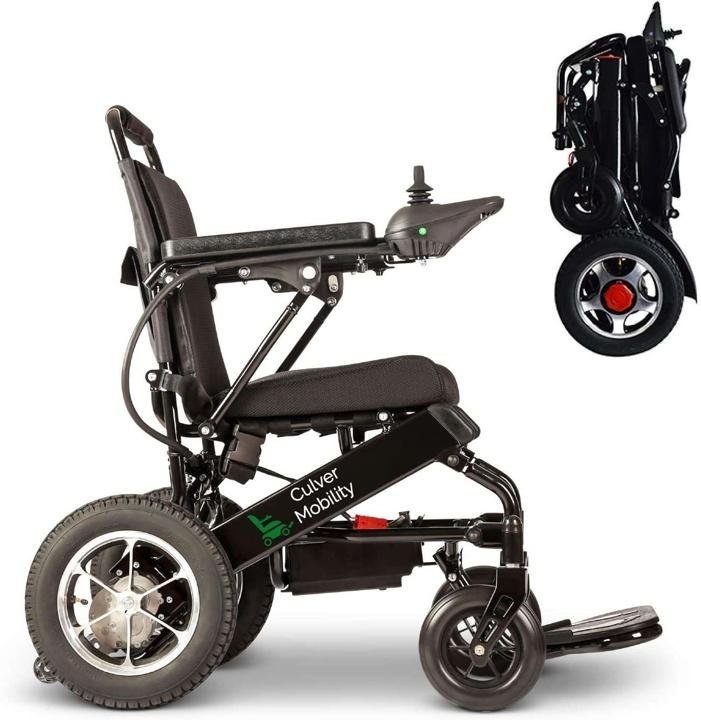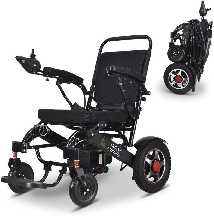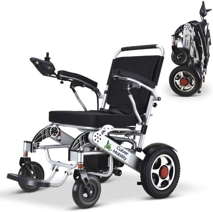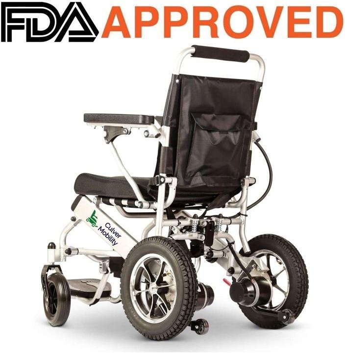 culver-mobility-Electric Power Wheelchair Scooter Fold Lightweight Folding Safe Electric Wheelchair Motorized FDA Approved Aviation Travel (Free Wheelchair RAMP Gift) (Silver-17.5 inc)