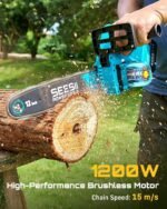 - 1200W Brushless Motor – Unstoppable Cutting Force Dominate tough cuts with a high-efficiency 1200W brushless motor, engineered for ultra-fast chain speeds and smoother performance. Effortlessly slice through hardwoods, thick logs, and storm debris—perfect for demanding tasks.