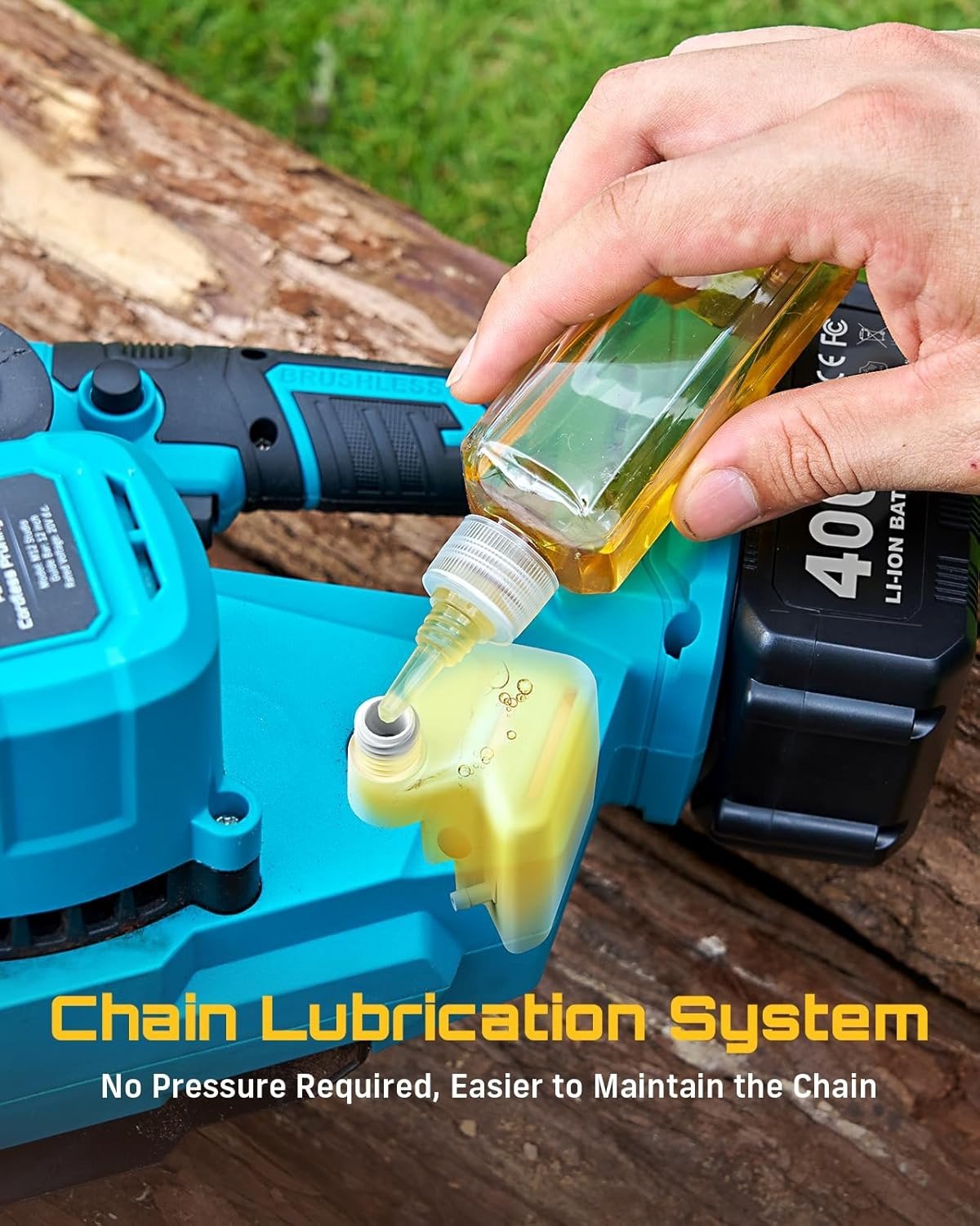 - Smart Auto-Oiling System – Effortless Maintenance The intelligent lubrication system adjusts oil flow based on cutting speed, keeping the chain cool and smooth during heavy use. The 60mL oil tank reduces downtime so you can cut without interruptions.