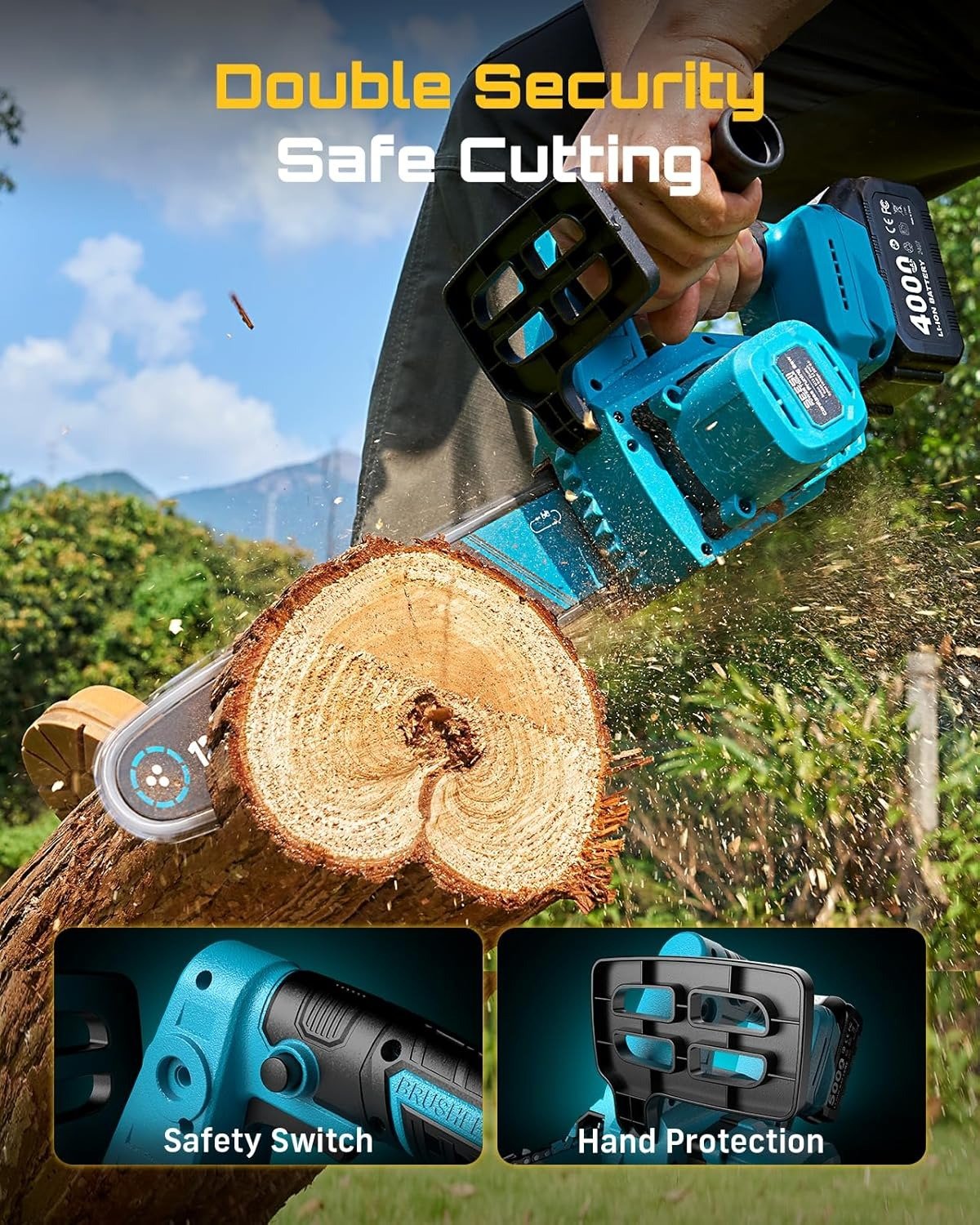 - 1200W Brushless Motor – Unstoppable Cutting Force Dominate tough cuts with a high-efficiency 1200W brushless motor, engineered for ultra-fast chain speeds and smoother performance. Effortlessly slice through hardwoods, thick logs, and storm debris—perfect for demanding tasks.