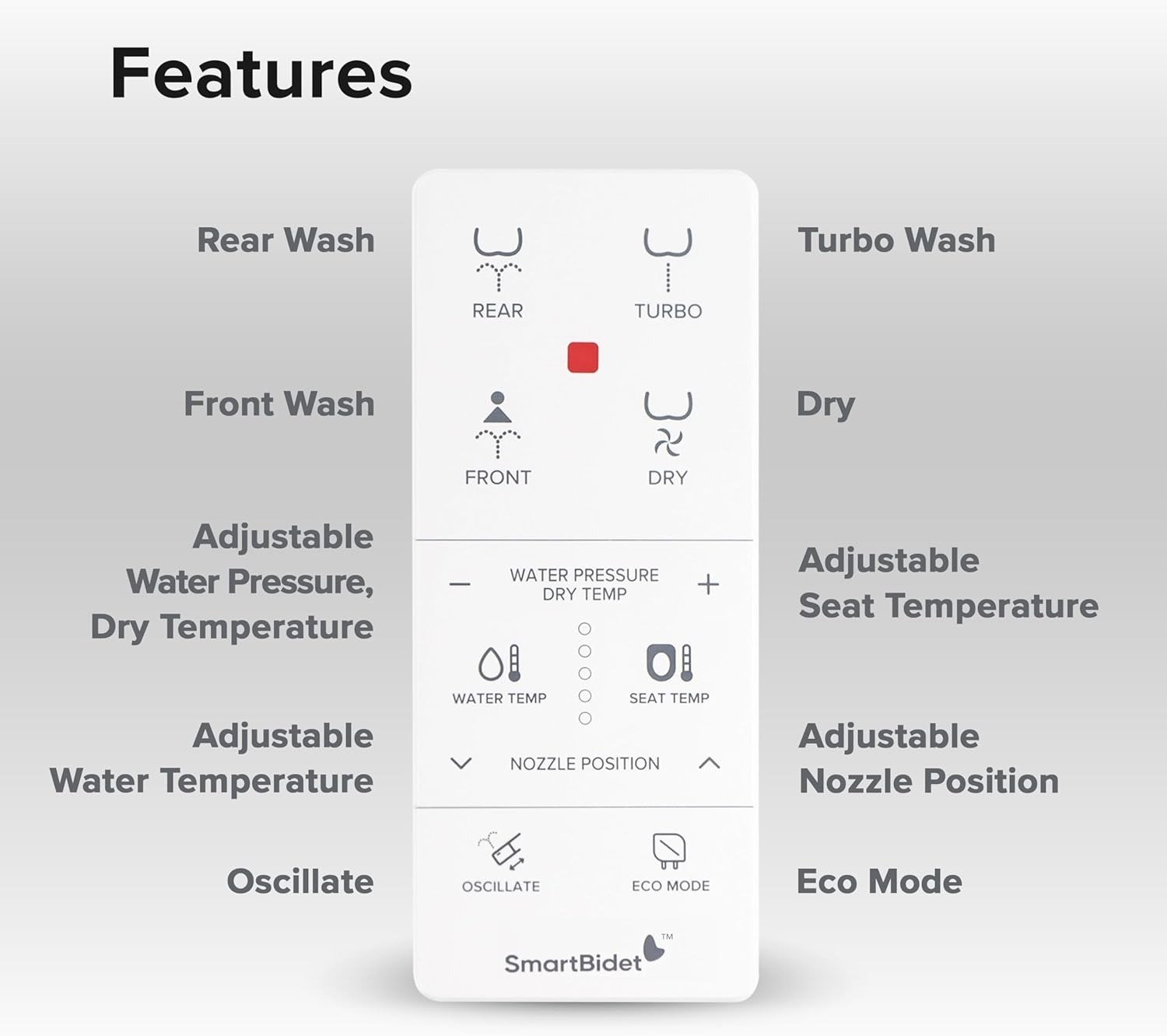 Wash Modes: Posterior Wash, Feminine Wash, Oscillating Wash