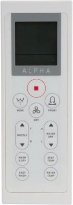 Operation is effortless with the included wireless remote control (1 AA battery included) featuring shortcut buttons—1-touch wash & dry and 1-touch easy wash (full-pressure rear wash with oscillation)—making it ideal for seniors, children, and individuals with disabilities. The remote comes with a wall mount for convenient storage.