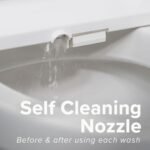The built-in warm air dryer offers 5 adjustable levels, eliminating the need for toilet paper and promoting eco-friendly use. The self-cleaning nozzle automatically cleans before and after each use, ensuring hygienic operation, while the hygienic filtered water further enhances cleanliness.