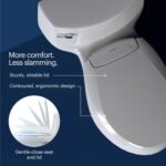 Designed for convenience and durability, the seat includes a soft-close lid and seat that prevent loud slamming, reducing noise and prolonging the product’s lifespan. It supports a maximum weight capacity of 320 pounds, ensuring stability for all users. Installation is quick and easy, replacing any existing toilet seat with adjustable fittings to achieve a perfect fit on standard fixtures.