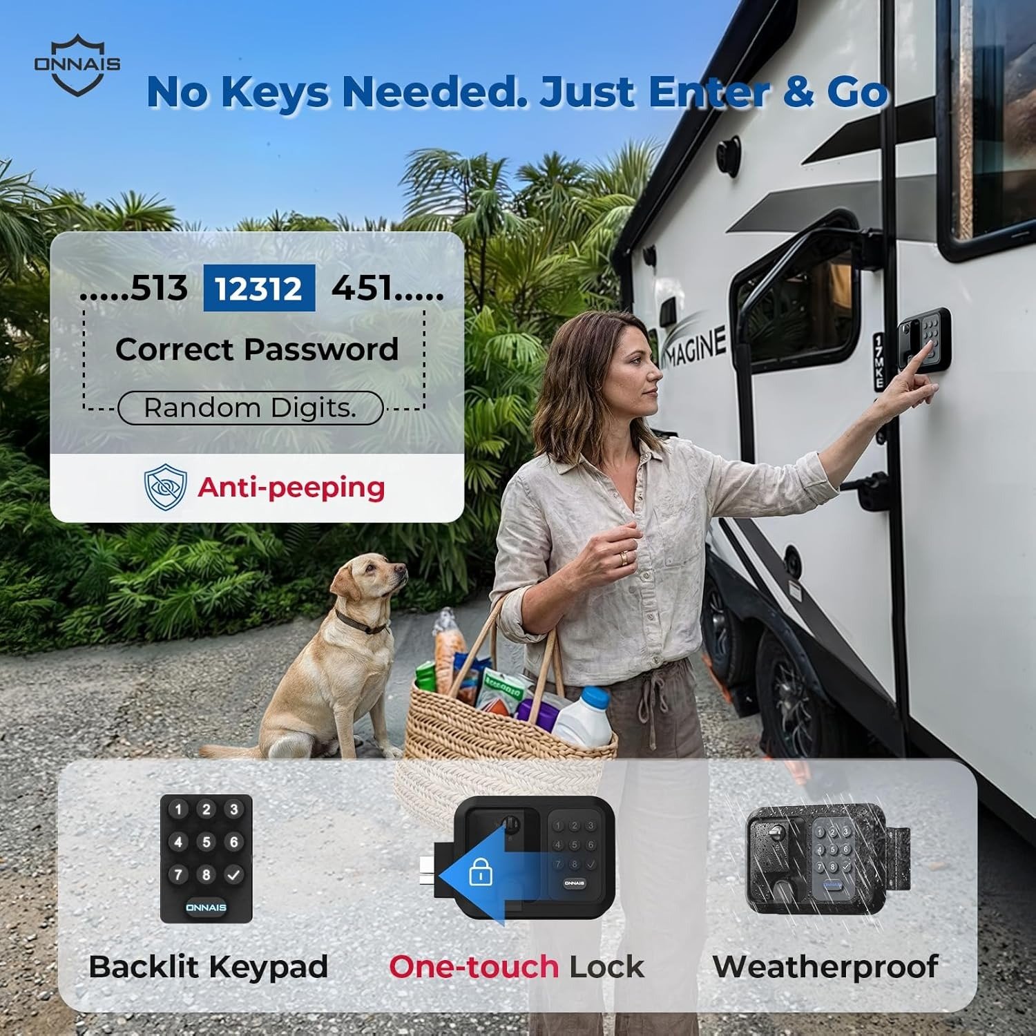 - Light Travel Full Control Keypad Entry: Our RV keyless entry smart lock features a convenient keypad that lets you unlock your RV without keys or a FOB—perfect for quick, light trips. Share temporary access with friends or service crews without handing over a key