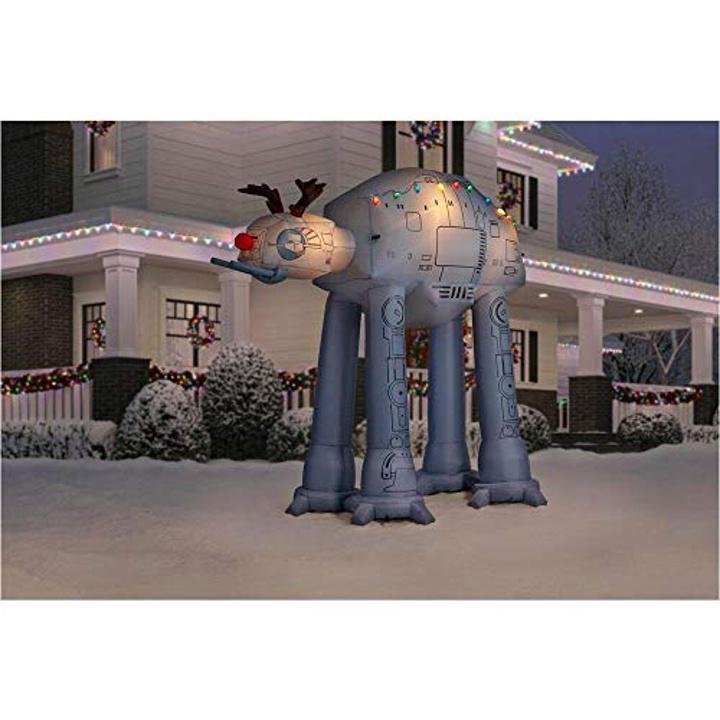 Details: Deck the yard with an Airblown Inflatable AT-AT deck out with reindeer antlers and a red nose. A must-have for fans of Star Wars, this iconic inflatable makes an eye-catching addition to your Christmas decorations. Features a multi-color light string. Setup is super simple. Just plug it in, stake it down and watch the magic unfold. Includes everything needed for easy outdoor setup.