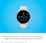 - Body Battery energy monitoring helps you understand when you’re charged up or need to rest, with even more personalized insights based on sleep, naps, stress levels, workouts and more (data presented is intended to be a close estimation of metrics tracked)