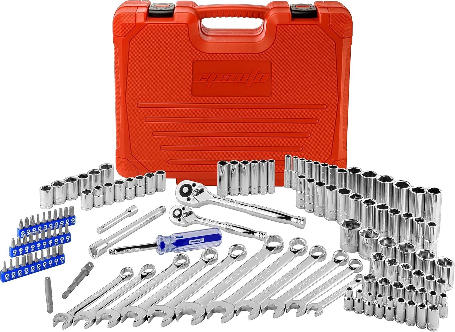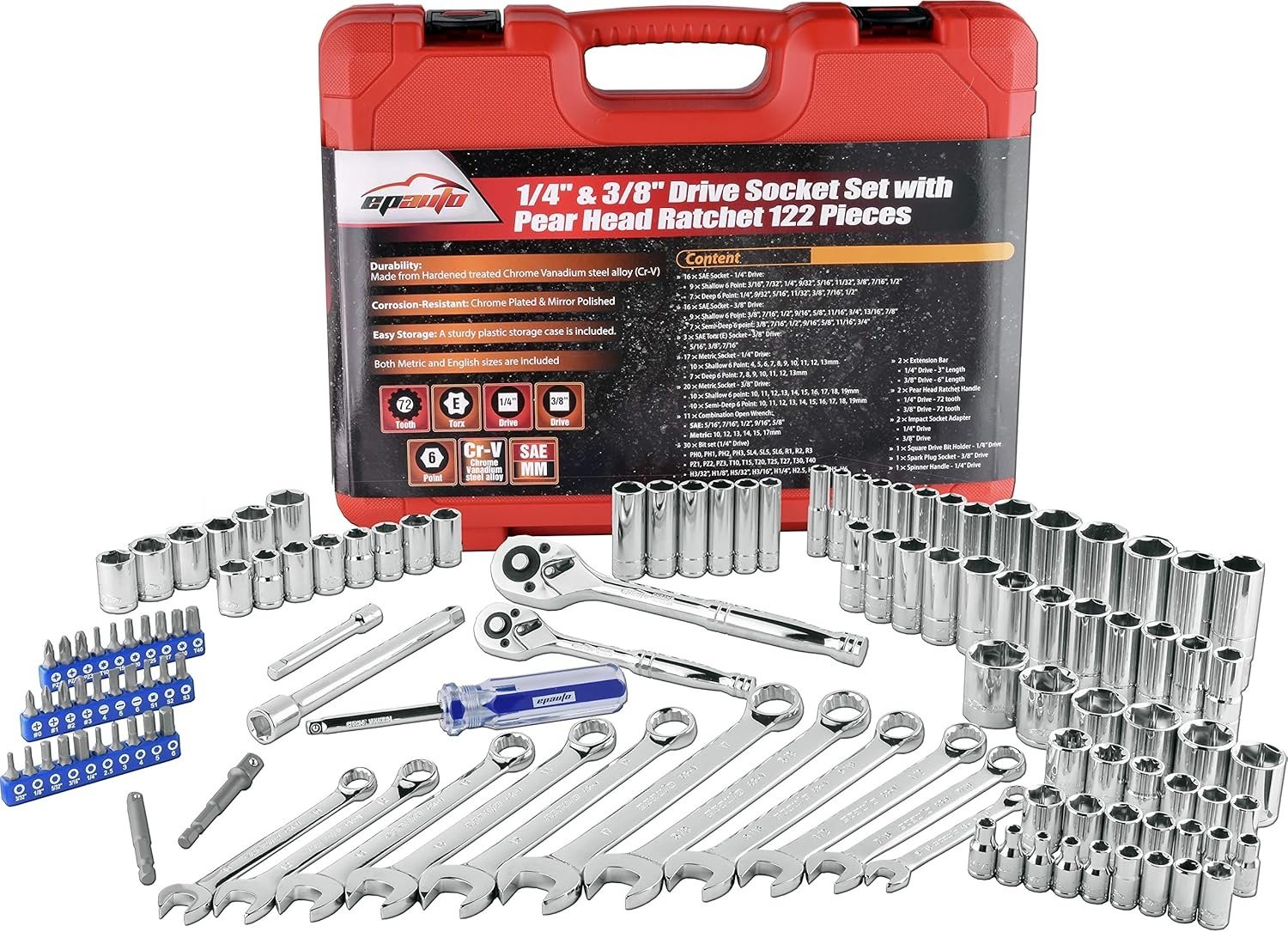 Mechanics Tool Set Drive Socket Wrench Ratchets, SAE/Metric, 122-Piece