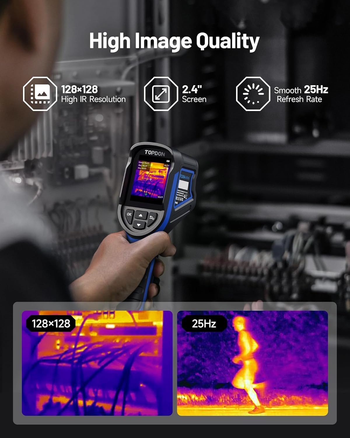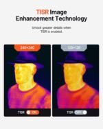 - 【Enhanced Thermal Clarity】Start with 128×128 thermal imaging and enhance to 240×240 resolution with TISR technology for greater details. The wide 40°x 30° field of view and a 25Hz refresh rate deliver accurate, smooth thermal images—ideal for detailed inspections in homes and on electrical systems and machinery