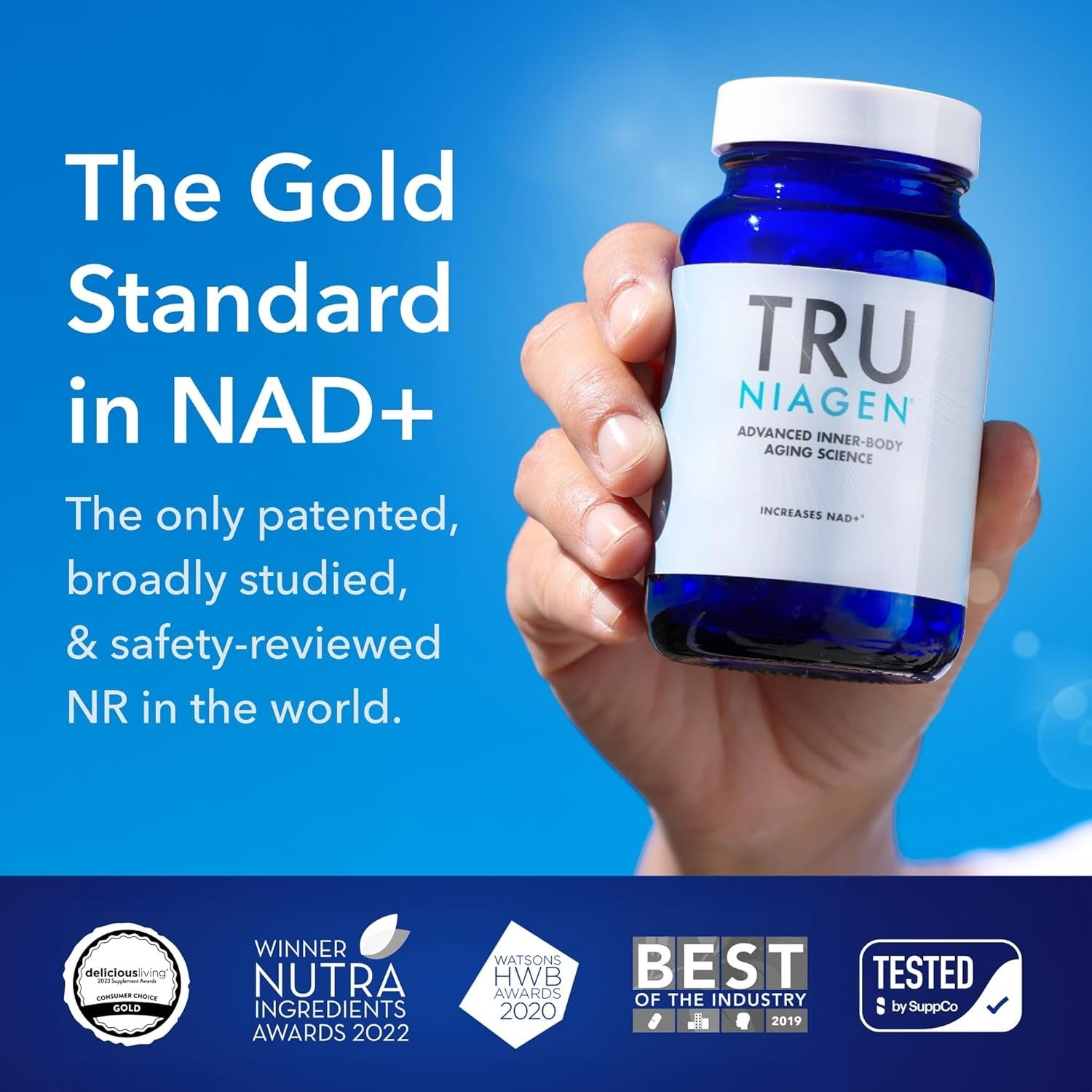- A COMPLETE ANTI AGING SUPPLEMENT – Support whole body wellness and boost cellular energy with Tru Niagen, a patented NAD+ supplement that supports the 37.2 trillion cells in your body Tru Niagen helps the production of nicotinamide adenine dinucleotide to promote healthy cell activity and can help reduce aging-related health concerns. Tru Niagen is clinically proven to be one of the safest and most efficient boosters of NAD+ levels, shown to increase NAD+ over 50% in just 2 weeks with daily use.
