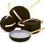 • NON-TOXIC & EASY TO CLEAN: Made without PTFE, PFOA, PFAS, lead, or cadmium, this ceramic pots and pans set promotes healthier cooking. The slick nonstick surface prevents food from sticking and wipes clean easily for quick, hassle-free cleanup.