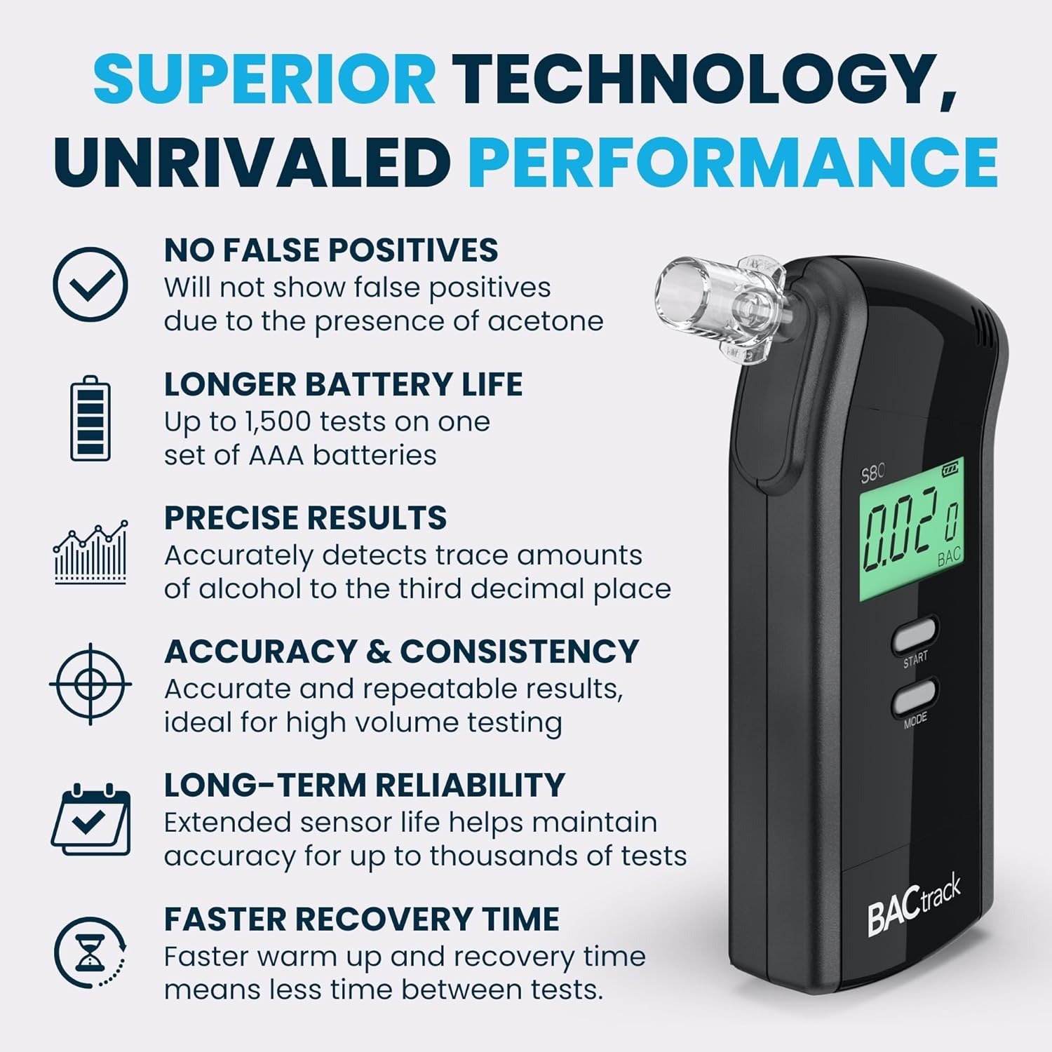 - #1-RATED BREATHALYZER BY WIRECUTTER – “After 65 hours of research, which included getting intoxicated at a police station to test personal breathalyzers alongside law enforcement equipment, we’re sure the BACtrack S80 is the most accurate, reliable, and easiest-to-use personal breathalyzer that you can buy.” – TheWirecutter, February 2022